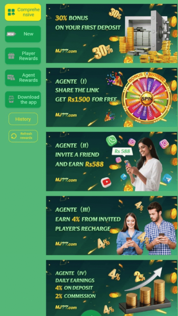 MJ77 Game Bonuses and referral rewards